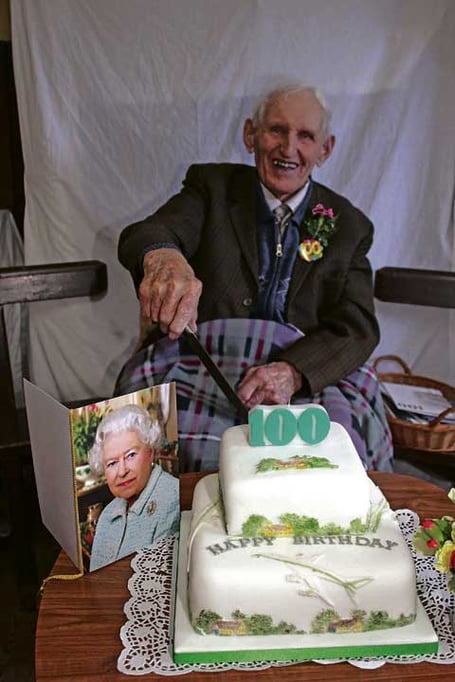 A LANGORE farmer celebrated his 100th birthday at the village hall on Monday with five generations of family and friends.