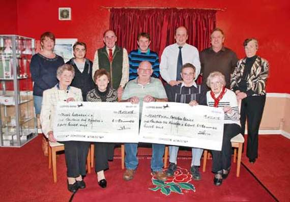 A cheque for £1,180 was presented to Sid Goodman, the chairman at Heartswell Camelford branch. Mrs Sally Moore, treasurer, Cancer Research UK Camelford committee, received the other cheque.
