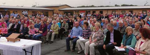 HUNDREDS of people packed the centre concourse at Holsworthy Agribusiness Centre for a harvest celebration and tour, last Friday. A tour was given to those who had not seen the agribusiness centre, which held its first livestock market the Wednesday before, page 5. Kivells auctioneer James Morrish then welcomed the audience to the harvest festival. The Rev Christopher Penn, priest-in-charge for Holsworthy, Hollacombe and Milton Damerel, the Rev John Henry, Superintendent Minister of the Holsworthy Methodist Circuit and the Rev Stuart Wilson from Bratton Clovelly took the service. Will Bromell, son of Kivells auctioneer Mark Bromell, and David Kivell, auctioneer and director, gave readings. A collection was made in aid of the market chaplaincy team and young farmers institution. For the full report, and a round-up of the area news and sport, see this week's edition of the Post.
