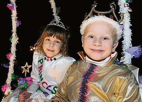 At 2pm, the afternoon procession took place, gliding through the town to the market, lead by our 2010 Prince and Princess Joseph Hartnett and Lily Bater, and 2010 queen, Miss Claire Munn. At the market, crowds gathered to watch the crowning of the royalty by the 107th president, Mr Adrian Drew. This followed by the judging of the children's procession (and with such high standards proved very difficult this year). By 6pm, the market was over-flowed with creative and entertaining tableaux and walking guys, with 25 tableau entries and many walking entries.