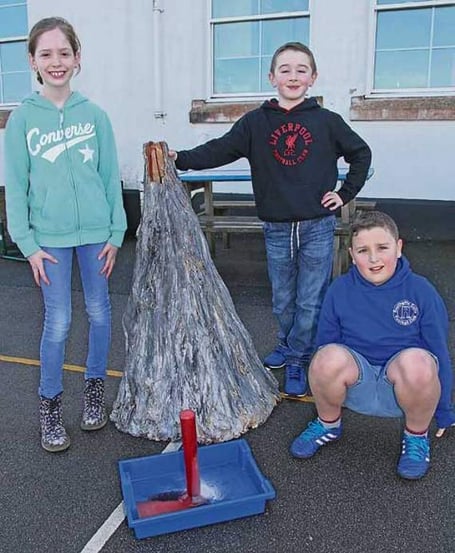 Creating a volcano last Friday, which was also non-school uniform day, were pupils from key stage 2.