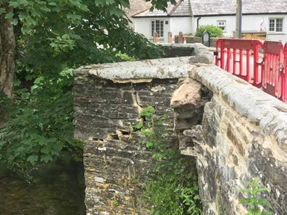 The 15th century bridge, which spans the River Camel, sustained considerable structural damage and was closed by Cornwall Council just after 12:40pm.