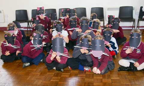 Class 1 played the rats led by the King and Queen Rats (from Class 2). They also had to be the forest, river, lake, boats as well as the dark tunnel and spooky spiral staircase.