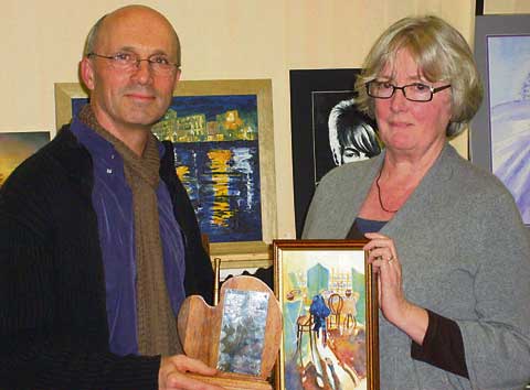 After great evaluation and analysis of the criteria, he reached a verdict of which he considered most worthy of the award, although a difficult choice owing to the collective high standard of entries. The award was won by a delighted Averil Jakeman for her atmospheric water colour painting.