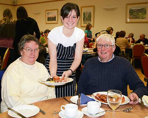 More than 260 people attended 'The Big Breakfast' which was served in three sittings throughout Saturday morning, April 4 in Holsworthy Memorial Hall. Organized by the local branch of Cancer Research, it raised £1,200 for the charity as well as for the Playtex (Breast Cancer) Moonwalk. Committee member Beccy Johns, one of the main