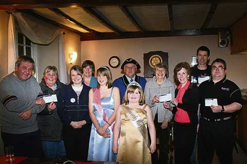 PRESENTATION: Above, from left are John Rogers (chairman), Dawn Bewes (playgroup), Lenni Elkins (majorettes), Sue Lyle (town band), Naomi Elkins (carnival queen), Portreeve Russell Dymond, Juanita Ridgman (fairy queen), Jenny Luff and Eileen Steele (luncheon club), Andy Copp (Torridge Allstars) and Andrew Painter (St John Ambulance).