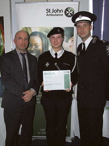 To be named as St John Ambulance's District Cadet of the Year, Katrina had to impress the judges in a formal interview as well as making a presentation and demonstrating her first aid ability. She also took part in team and other challenges.