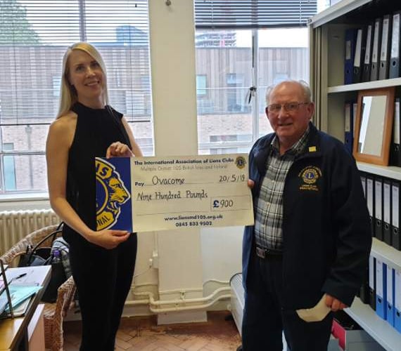 A CHEQUE for £900 was donated to Ovacome by Lion Brian Withall recently following a successful ‘Easter Egg Draw’.