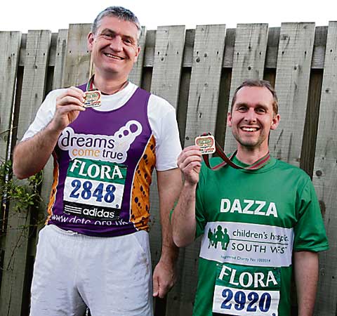 Richard Seager and Darren Lawman of Holsworthy successfully completed this year's London Marathon. Darren finished the run in 4hrs 38mins finishing 15,599th position. He was raising funds for Children's Hospice South West. Richard crossed the finish line after 5hrs 50mins finishing 22,846th. He was raising funds for Dreams Come True, a national charity which makes the dreams of terminally or seriously ill children become a reality (http://www.justgiving/richardseager">www.justgiving/richardseager). Darren and Richard wished to thank everyone for their support and sponsorship.