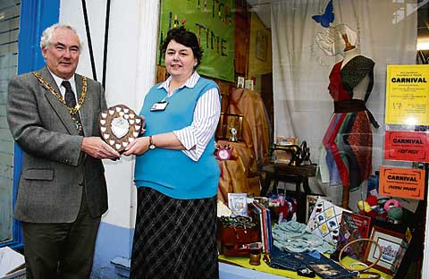 The winner was the North Devon Hospice shop and on Saturday morning the Mayor of Holsworthy, Cllr David Smith, presented the shield to Shirley Barribal.