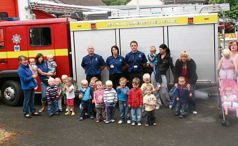 Pictured are the children, play leaders, parents and firefighters outside Holsworthy Fire Station.