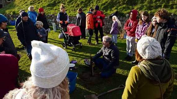 Starting at 10.30am, around 30 people watched as Rob Meredith, the Bude Friends of the Earth group co-ordinator, demonstrated how to plant the trees. Each of the holes were dug and then the soil was enriched with organic peat-free compost and a powder containing mycorrhizal fungi to help the roots get established.