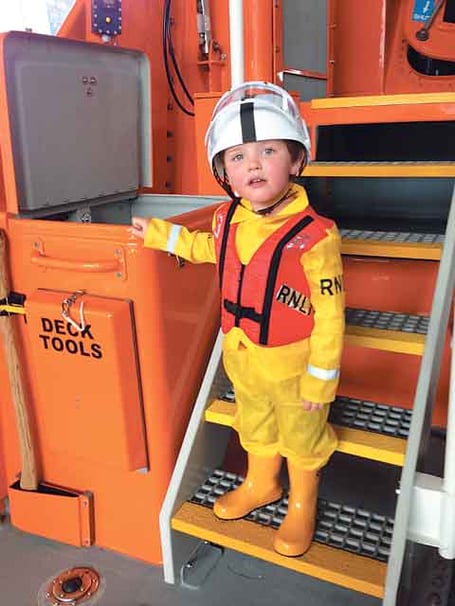 So come on, have a go at spotting yellow wellies and help raise money to keep our lifeboats keep you safe on and in the sea. In case you're not sure what our yellow wellies look like, coxswain Philip John's son, Dylan, is very kindly modelling the whole outfit - doesn't he look good!
