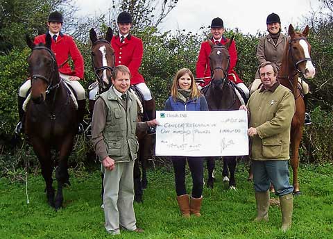 Judith Barnes, who rode to hounds with the Tetcott Hunt, met an untimely death from cancer earlier this year and at the meet, members of Judith's family were on hand to receive a £100 cheque on behalf of Cancer Research UK.