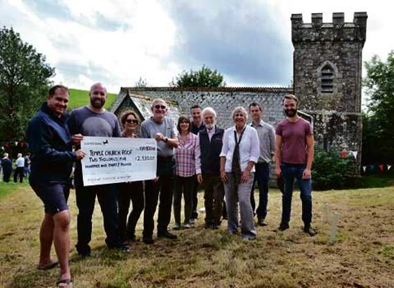 The afternoon included the presentation of a cheque for £2,530 to the Parochial Church Council by John Dickin, a former resident, along with six friends — including Matthew Angwin, Andrew Trevarthen, James Atherton, Joe McGovern, Niall Rousseau.