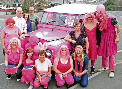 The staff at the Brendon Arms in Bude dressed up in pink for charity on Friday. Jess Cameron kindly lent her Land Rover to promote the event. They had collecting buckets, a treasure hunt and raffle, and sponsorship amounted to £1,500.
