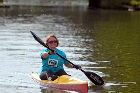 A BUDE woman has completed a 20km surf ski paddle in aid of Animal Free Research UK.