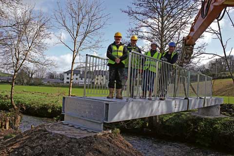 The bridge, believed to be the first footbridge across the river since medieval times, will connect the existing school site to the newly created sports field across the River Kensey.
