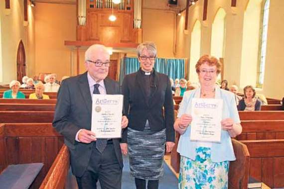 SOUTH PETHERWIN chapel organists Gordon Maunder and Mrs Mary Stoneman have been presented with certificates recognising their outstanding service to the chapel during its 145-year anniversary celebrations on Sunday, May 8.