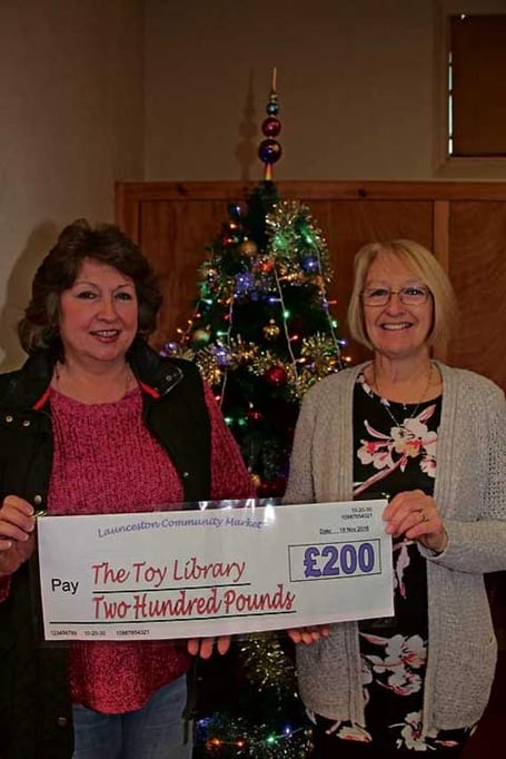 A cheque for £200 was presented to Val Carpenter, who received it on behalf of Launceston Community Toy Library from Friday Community Market representative Chrissy Miller on Friday, December 2, from money raised by the market through table fees. The market runs on Friday from 9.30am to 1pm at Central Methodist Church Halls, Castle Street.