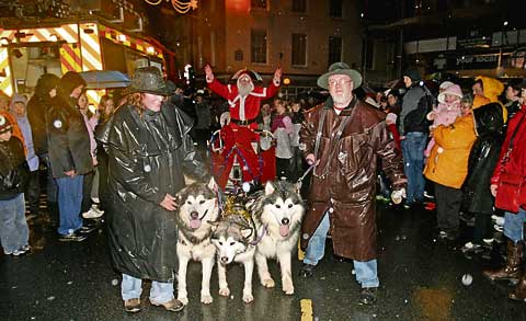 The procession, which led its way around the streets of the town with music from James Robertson and his pipes, the Lantern Bearers from Windmill School, of course Father Christmas and his team of Alaskan Malamute dogs, Big Top Mania, snowmen, elves, and Alan with his beautiful car from Wed-In-Style, was greeted in the square by a delighted and very large crowd.