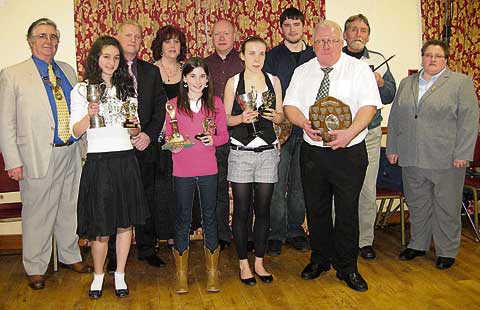 Launceston Town Band held its Annual Band Dinner and Presentation Evening on Saturday, January 31 at Trethorne. Paul O'Brien, Launceston Deputy Mayor, presented the awards. Samantha Baker was named Junior Band Learner of the Year; Katie Parkin won the Gordon Hodge Trophy for the Most Improved Person in the Senior Band; The Eric Tiplady Cup went to Eleanor Northy for the Most Promising Young Person in the Senior Band; Merv Osborne won the Chairman's Shield for Player of the Year; and The Conductor's Baton was awarded to Mike Webber to celebrate 60 years of Brass Banding. Steve Wagstaff won the President's Shield for Best All Rounder in the Senior Band and was voted Players' Player of the Year by band members. The section award, Plestin les Greves Cup was awarded to the trombone section, Nigel Joy, Mary Rose and Tony Uglow. Band members enjoyed a super evening, which was rounded off with entertainment from Katie Thomas, a vocalist, who encouraged most people to venture onto the dance floor.