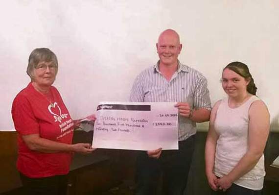 A cheque for £2,592 was donated to the charity from fundraising, carried out between October 2014 and 2015. This included activities such as the annual dung run and the Jack Glanville entertainment evening that was held in March 2015.