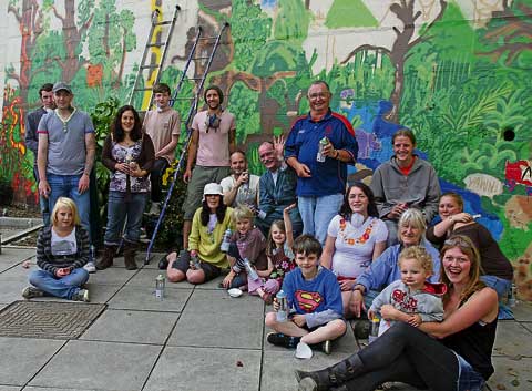 Sitting along side the murals by local schoolchildren, what was a huge blank wall has now been transformed into a vibrant mural of a jungle scene. With the kind permission of Launceston Town Council, Launceston Barefoot volunteer group worked alongside artist (and all round genius) Cosmic, to paint the mural over the space of two days and have created a piece of art for the whole town to enjoy.