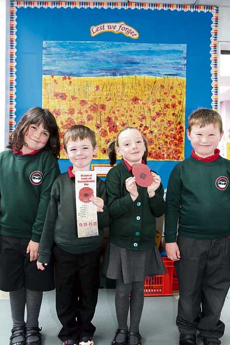 THE staff and children of Bude Infant School are sending a special poppy and donation to be placed in the 11-11-11-11 memorial in Royal Wootton Bassett. The poppy has a few words from the children expressing thoughts of soldiers from both the past and now. All classes are preparing items for a competition being held by Bude Branch of the Royal British Legion and the large picture behind the children is being offered to the highest bidder with all proceeds going to the Poppy Appeal.