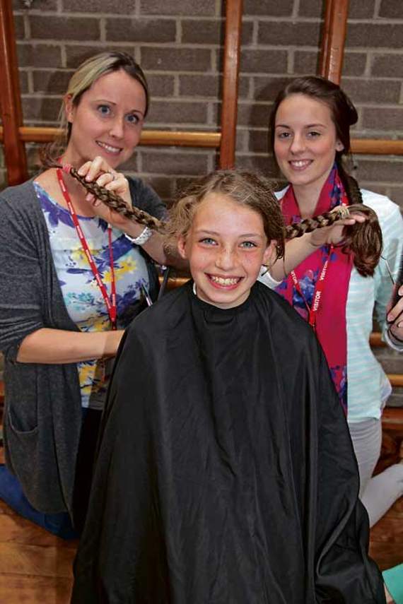 Kelsey had her hair cut last Thursday, July 14 at Lewannick School by hairdressers Katie Lewis and Abby Bounsall, who both kindly cut her hair free of charge.