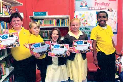 Pictured are some of the children of St. Teilo's 'Chatterbooks' Book Group (Joshua Fargin, William Russell, Maelona Thomas, Molly Hayes, Lethabo Siphika) being awarded their attendance certificates by Miffany White. Not pictured are Ameya Neye, Caitlin Rees and Logan Dugan. Since January, the group has met up fortnightly in Tenby Library for some lively book discussions.
