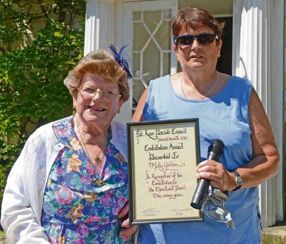 After declaring the fete open, Mrs Girvan was presented with a contribution award for her services to the church and parish over many years.