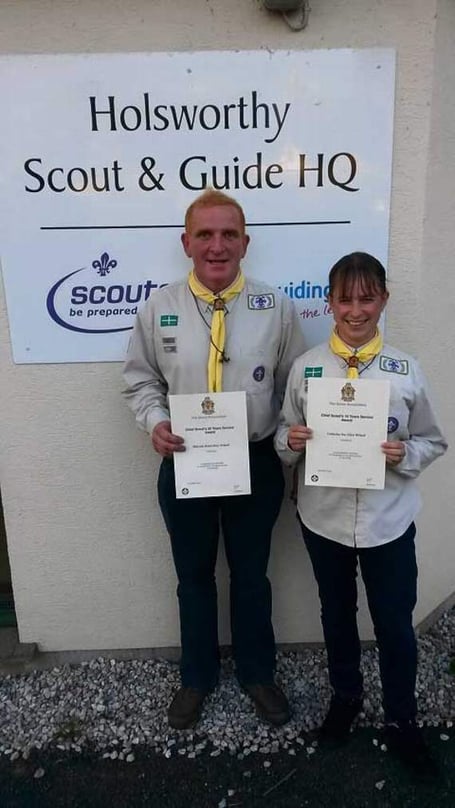 Malcolm was awarded for his 25th year serving the Holsworthy Scout Group and Cathy for her 15th year.