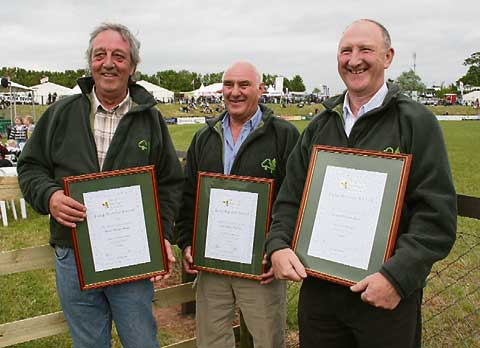 John Durrant, Rodney Brock and Len Martin received their Long Service Awards from Sir John Cave, president of the Devon County Agricultural Association.