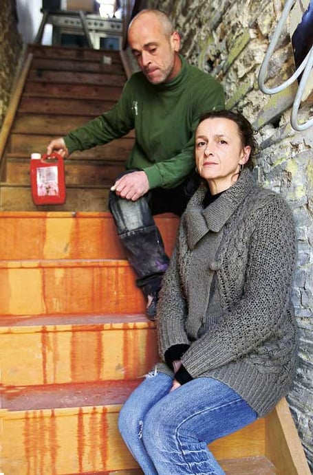 Adam and Kimmy woke on the Wednesday morning to discover that cement plaster had been poured down the stairs inside the property, which opens out onto the pavement and street.