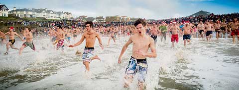 At 11am, a stampede of around 500 people headed into the Atlantic Ocean, on a small but stony patch of sand.