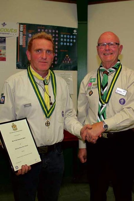 THE Scout Association has presented The Bar to the Award for Merit to Malcolm Withall, leader of Holsworthy Scouts, in recognition of further outstanding service to scouting. The award was presented by John Jarvis, District Commissioner and Deputy County Commissioner. Anyone interested in helping at scouts or becoming a leader is asked to contact Cathy Withall on 01409 254803. Pictured are Malcolm Withall and John Jarvis.