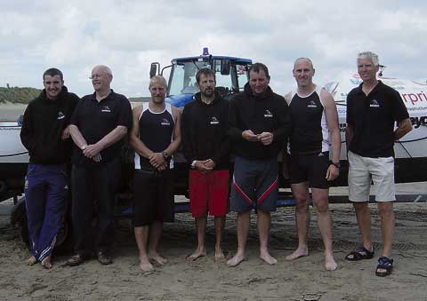 The team consisted of Liam Sharpe (Bude RNLI inshore lifeboat); Brown Cardoo (Bude RNLI lifeboatman); Ian Parkinson (Bude) and Andy Cloke (Bude RNLI inshore lifeboat), as well as support from 'super-sub' James Adams (a sixth form student at Shebbear College) and land based assistance from Stephen and Jill Hutchinson, Brian Hunt and Kristin Mills.