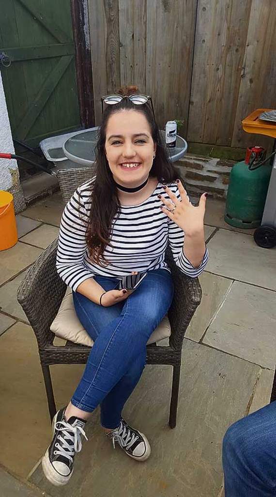 She said: “I was not expecting it at all. James and I have been together for seven years — we met when we were both 15, and have been together ever since.