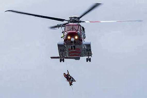 Having stabilised the casualty, Rescue 924 then winched the casualty, his friend and the winchman on board the helicopter.
