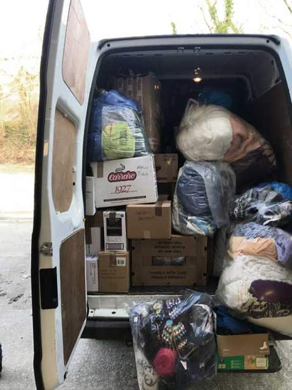 “We’ve also go a van full of aid to take to France on the 16th of this month (tomorrow). Everything’s in there — food, sleeping bags, blankets, clothing, tents.”