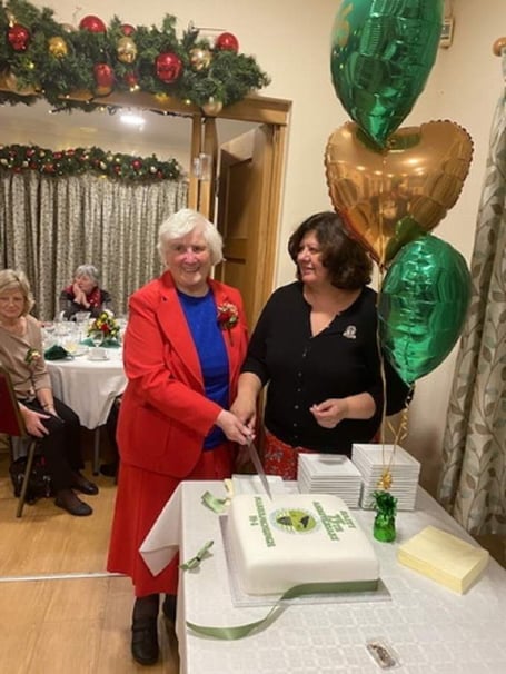 Marhamchurch WI celebrated its 75th anniversary with a meal at Holsworthy Golf Club. Members were joined by representatives from Bude WI and Week St Mary WI. New Federation president Helen Kestle also attended and is pictured here with Eileen Burnard, Marhamchurch WI’s longest-serving member, cutting the anniversary cake.