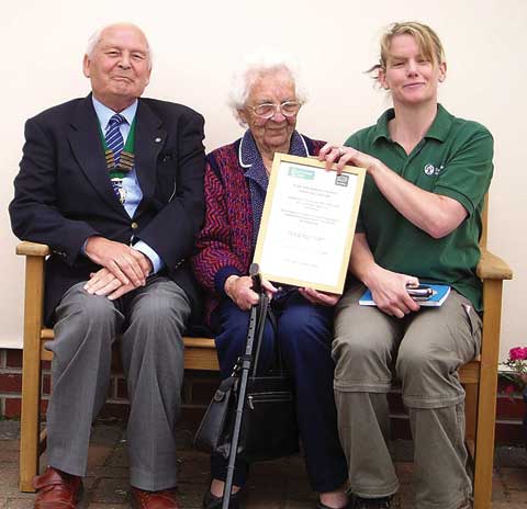 A PRESENTATIONAL has been made to Mrs Marjorie Davey in appreciation for her unstinting and accurate recording of rainfall in Chilsworthy from January 1, 1974 to September 30, 2011, when almost 14,000 observations were carried out during that period. Mrs Davey began recording with her late husband, Bill. Ken Carroll, chairman of Holsworthy Hamlets Parish Council, unveiled a garden bench outside the village hall, in recognition of her work.