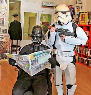 The dreaded Darth Vader, accompanied by an Imperial Stormtrooper were not, in fact, in a galaxy 'far far away' but were taking a look at the Forest's favourite newspaper in the centre of Lydney!