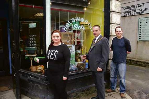 Mayor Jon Hutchings cut the ribbon to officially open ‘Holsworthy Pets’, which is owned by Ula Skowysz and Dan Baseley.