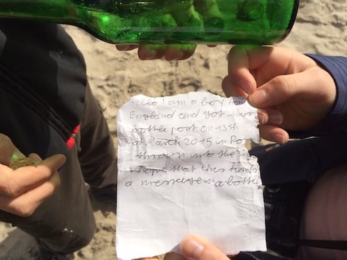 After an evening with Johnny Depp as a pirate on TV on a weekend trip to Scharbeutz on the German Baltic Sea, our kids Sophie, Tim, Julius and Simon found a message in a bottle.