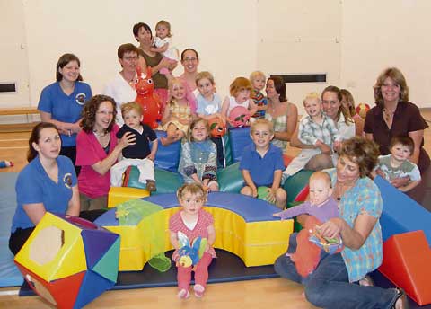Katie Paynter (front left), Louise Cowling (back left) and Wendy Parsons (middle right) are pictured above at the mini-gym with parents and children from the Warbstow community.