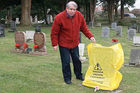 The notice said: 'For reasons of safety, any memorials in a dangerous condition may be laid flat on the grave. The cost of essential maintenance or remedial work to the memorial is ultimately the responsibility of the family.'