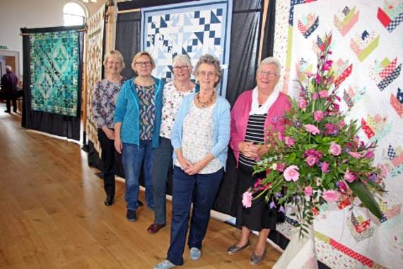 The quilts were lent by the members of Parkhouse Patchwork group and the flowers were given and arranged by members of Bude Flower club.