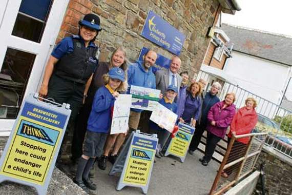 A NUMBER of people are encouraging motorists to think before parking outside Bradworthy Primary School.